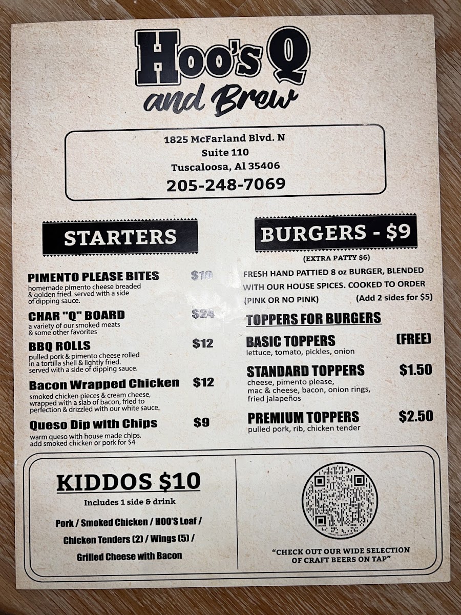 Welcome to Hoo's Q & Brew, a hidden gem located in the heart of Tuscaloosa, Alabama. This vibrant eatery specializes in delightful barbeque and an array of scrumptious sides, making it a must-visit for both locals and visitors alike. With a mission to serve authentic flavors, Hoo's Q & Brew prides itself on its slow-cooked, tender meats, perfect for barbecue enthusiasts.